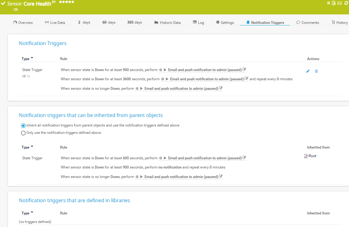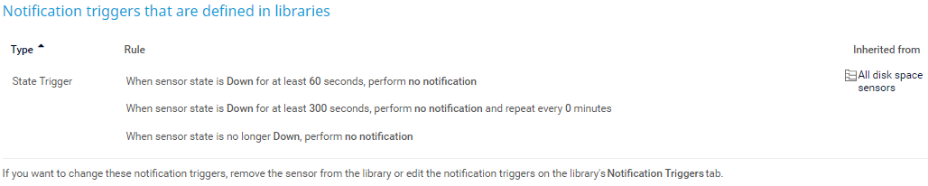 You can also define notification triggers in libraries. If a sensor is in a library that has notification triggers, the sensor shows them on the Notification Triggers tab. For more information, see section Notification Triggers That Are Defined in Libraries.