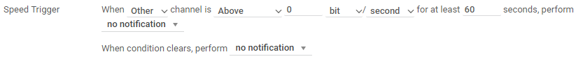 The speed trigger performs a notification if the speed that a sensor monitors changes. Hover over and select Add Speed Trigger from the menu to add a new speed trigger or click next to a speed trigger to change it.
