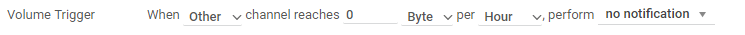 The volume trigger performs a notification if a sensor reaches a certain volume in a specific time. Hover over and select Add Volume Trigger from the menu to add a new volume trigger or click next to a volume trigger to change it.