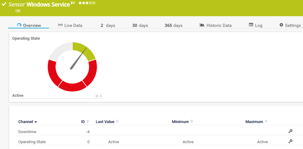 In the channel table on the Overview tab, this channel never shows any values. PRTG uses this channel in graphs and reports to show the amount of time in which the sensor was in the Down status.
